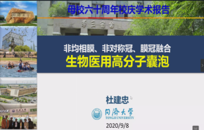 杜建忠,1994级校友,同济大学教授。他报告的题目是《非均相膜、非对称冠、膜冠融合,生物医用高分子囊泡》。