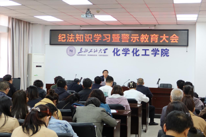 4月24日下午,学院在化工馆212会议室召开纪法知识学习暨警示教育大会,会议由党委书记司国海主持。