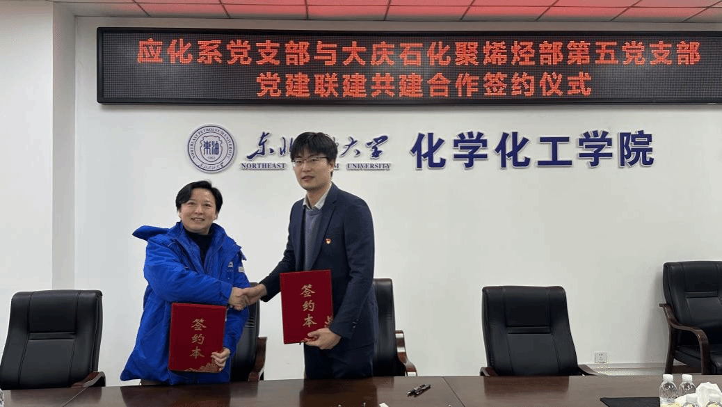 2025年12月12日,大庆石化公司聚烯烃部第五党支部与我院应化系党支部开展党建联建共建活动。应化系党支部书记翟岩亮、宣传委员陈丽铎、纪检委员张娜、组织委员梁嫄,大庆石化公司聚烯烃部第五党支部书记史红宇、支部党员一级工程师陈雷、三级工程师南天一等代表共同出席并举行共建签约仪式。在签约仪式上,应化系党支部书记翟岩亮、大庆石化公司聚烯烃部第五党支部书记史红宇分别介绍了各自党支部的基本情况,并共同签署了《党建共建协议书》。双方围绕产教融合、人才培养与科研攻关等重点内容进行了深入交流,一致同意以党建共建为平台,积极探索校企协同新模式,推动资源共享与优势互补,实现党建与业务互促共进。